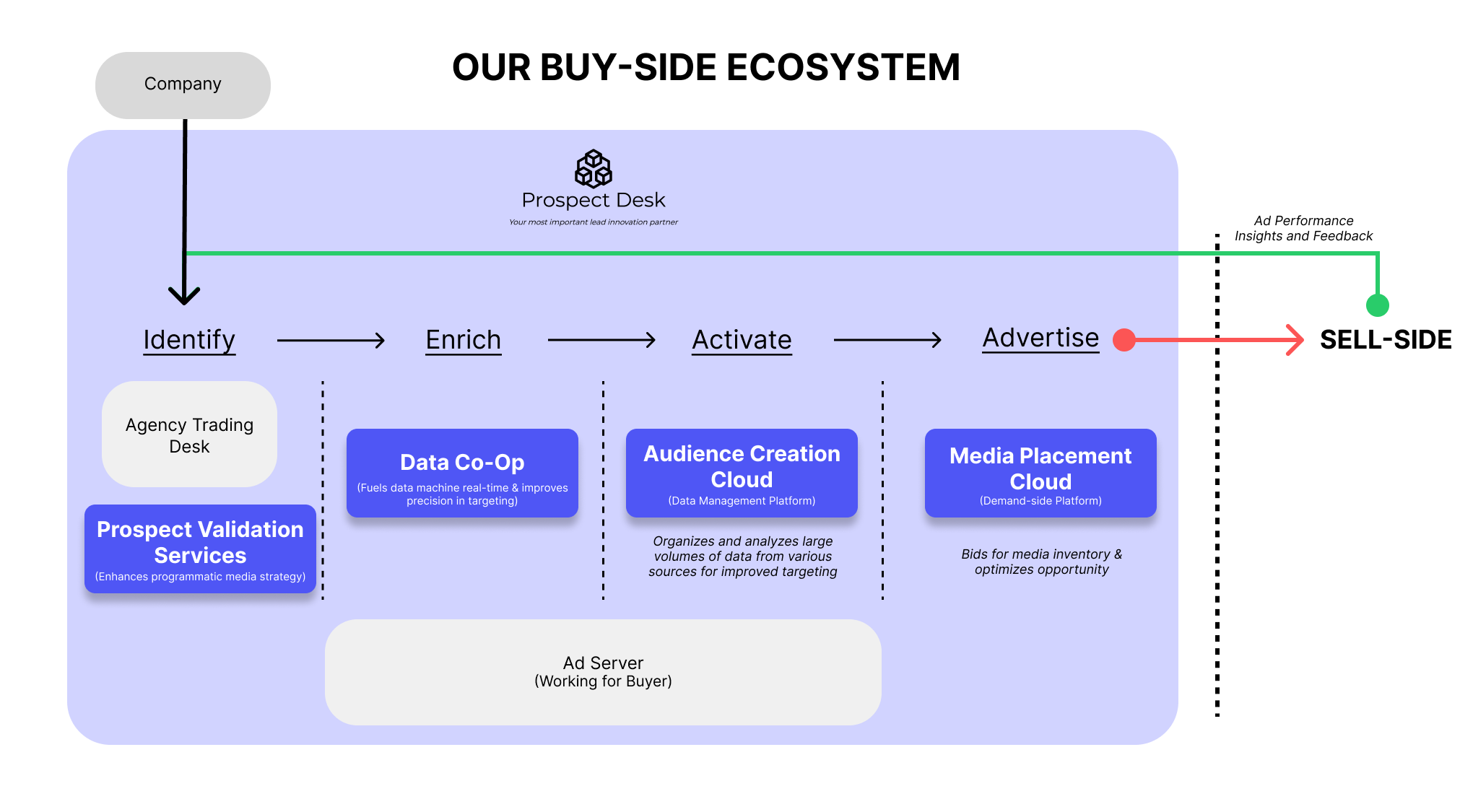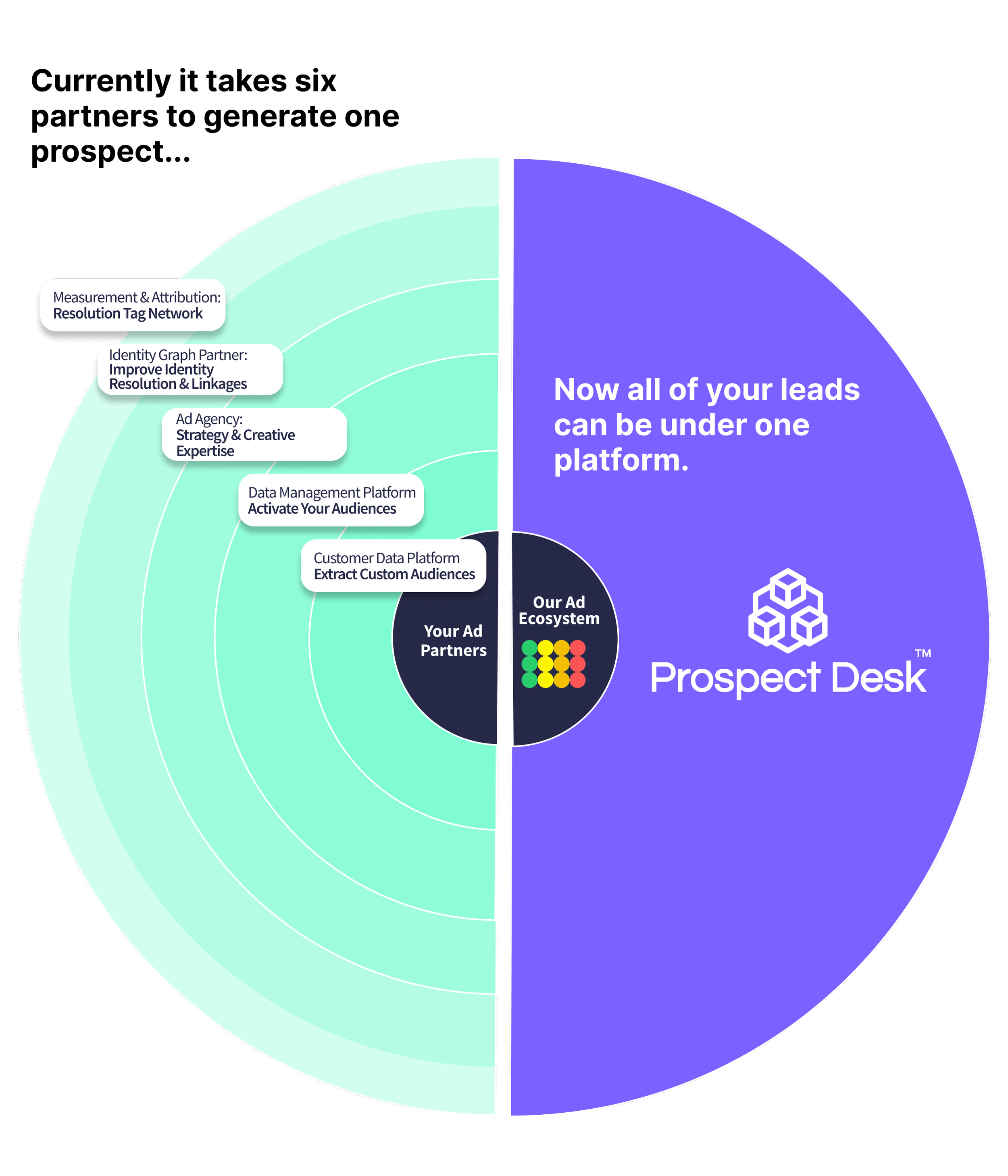 From all aspects of data to activating custom audiences, we take on the responsibility of all the components and costs of the buy-side digital ad market, so you can focus on what matters. Prospect desk and our ecosystem of real-time data sources with the power of our identity graph, online/offline data capabilities, and visitor (tag) resolution architecture so you can achieve the highest ROI on your ad-spend.